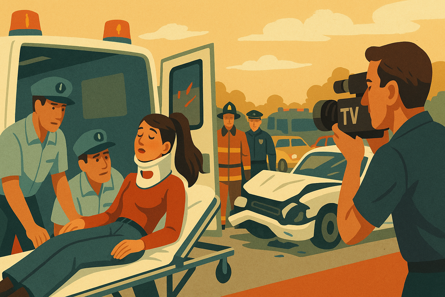 I was wheeled into the ambulance, neck brace locked tight, morphine burning its way into my arm. Sirens screamed as we tore down the highway, Christmas traffic pulling over in waves.