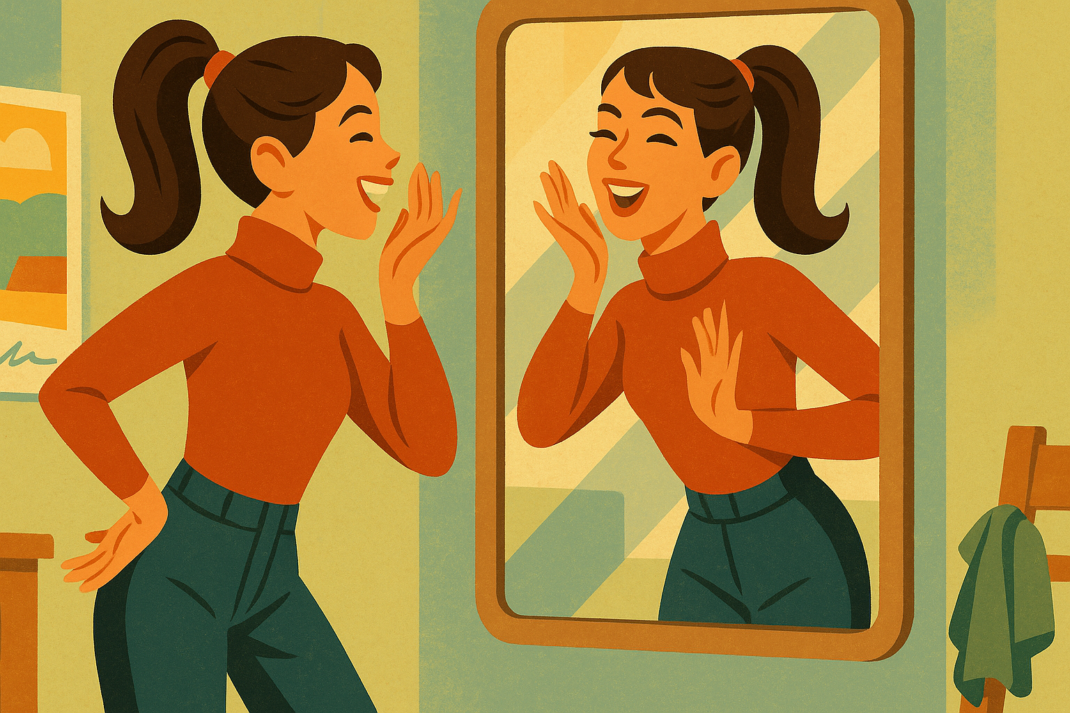 Enter my new superpower: charm. Okay, flirting. Why not? I pulled on my best red turtleneck, flared jeans, slicked back my ponytail, and practiced a giggle in the mirror. I was ready.