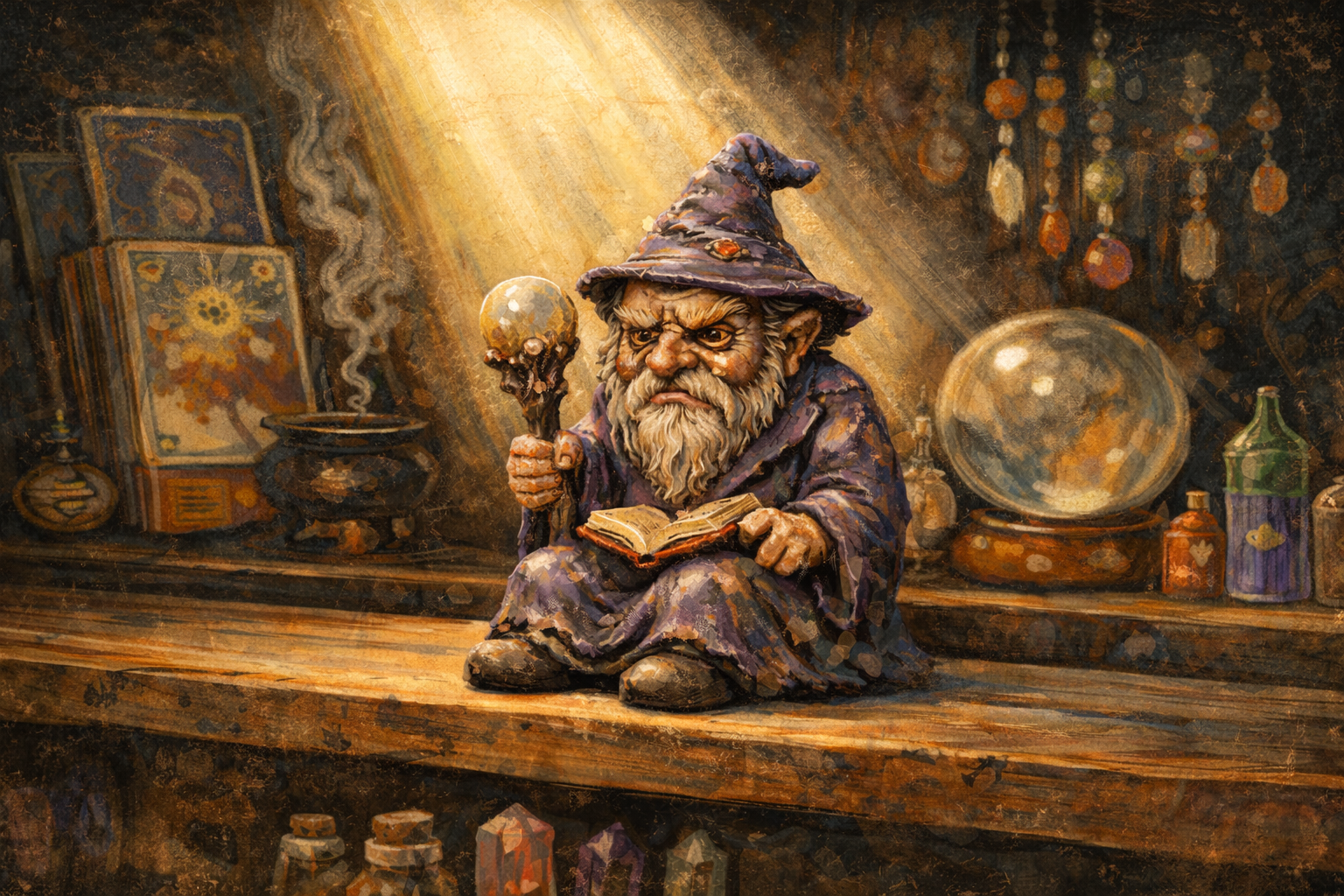 So I scoured the shop for the ugliest item within my price range and found it: an ugly wizard figurine. He was gnarled. Ancient. Dressed in robes straight out of a low-budget fantasy novel. He had no purpose beyond being ornamental. I hated him with a passion that surprised even me.